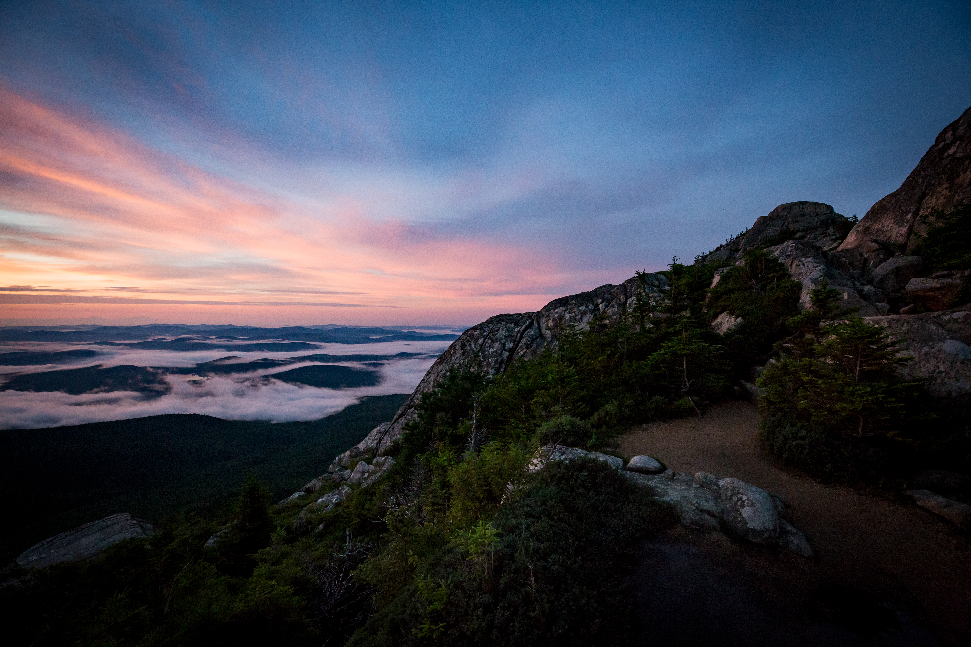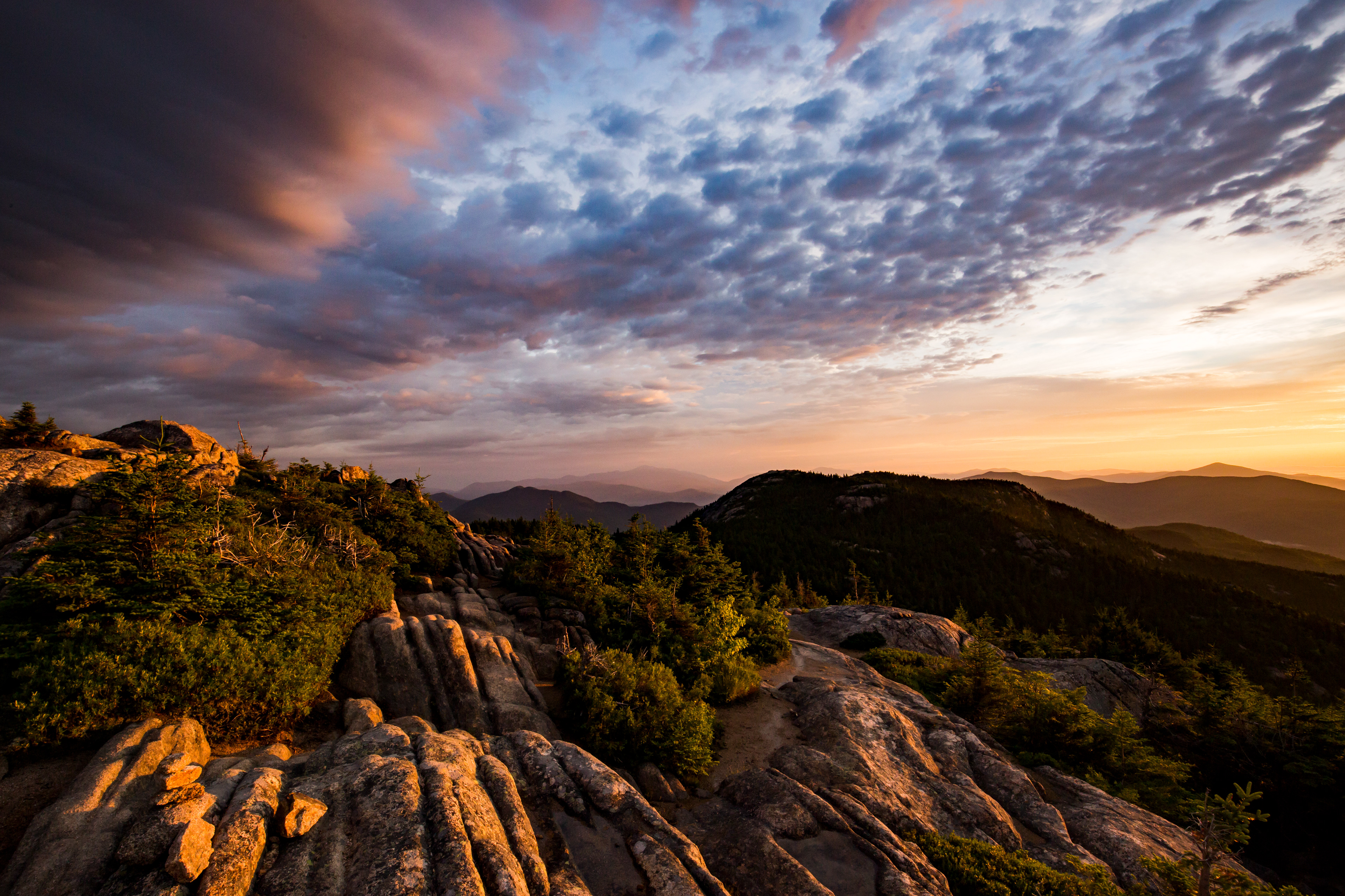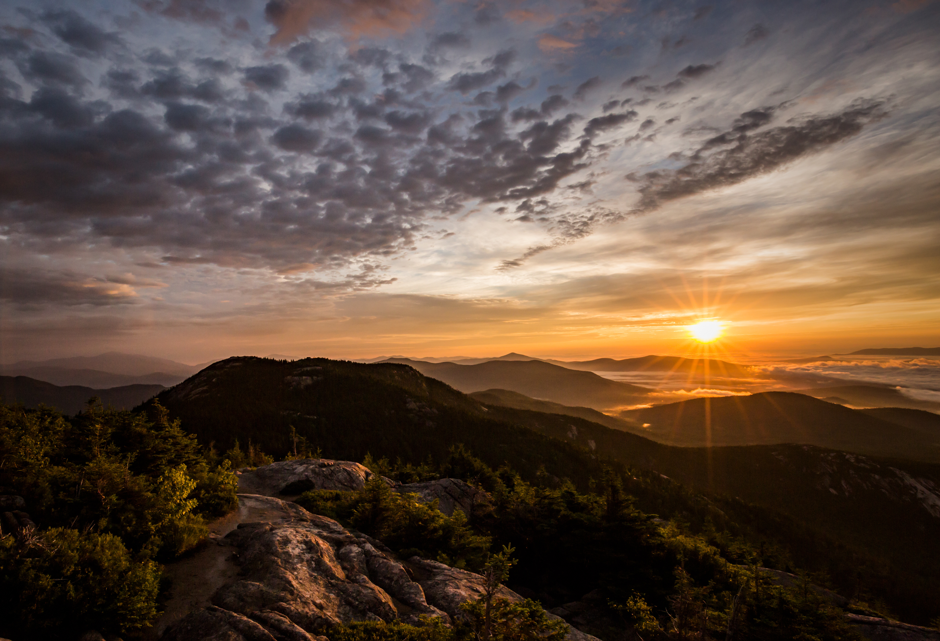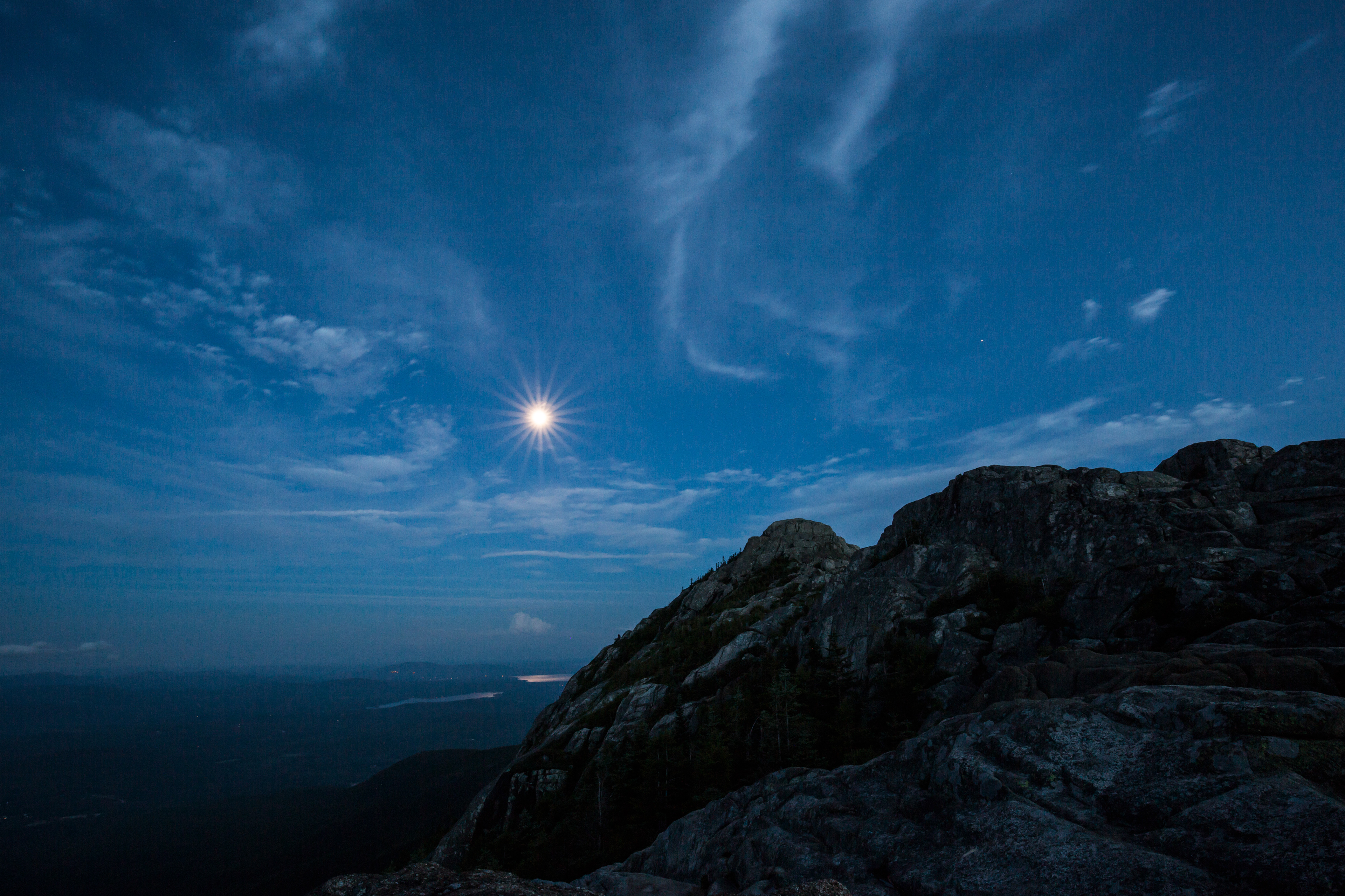 Overnight hike in July 2016 on Mt Chocorua in White Mountains of NH - Great Sun Set, Followed by Moon Rise and Amazing Sunrise